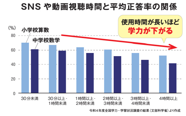 一方で、気にかかるのは過度なデジタル端末を利用した教育です。下の図にあるように、「長時間のネット利用で学力が下がる」という調査結果が出ています。デジタル化を推進したことで、集中力の低下やスマホ等に依存してしまっては本末転倒です。「読む力」「書く力」「考える力」は機器の利用だけでは、なかなか身につくものではありません。今後も滑川市の教育政策を注視してまいります。